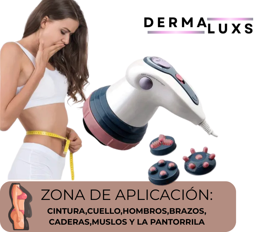 El masajeador anticelulítico Dermaluxs combina acción vibratoria y luz LED para reducir visiblemente la celulitis y mejorar la firmeza de la piel.